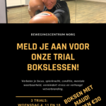 Bewegingscentrum Norg zet bokslessen op het programma als TRIAL. We verzorgen drie bokslessen op woensdagavond om 19 uur. Voor alle materialen wordt natuurlijk gezorgd.