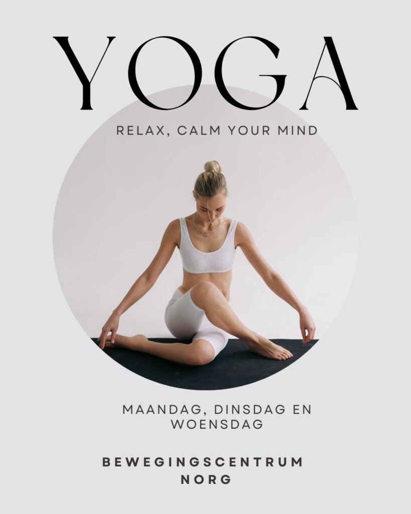 Op maandag, dinsdag en woensdag kun je YOGA volgen bij Bewegingscentrum Norg.